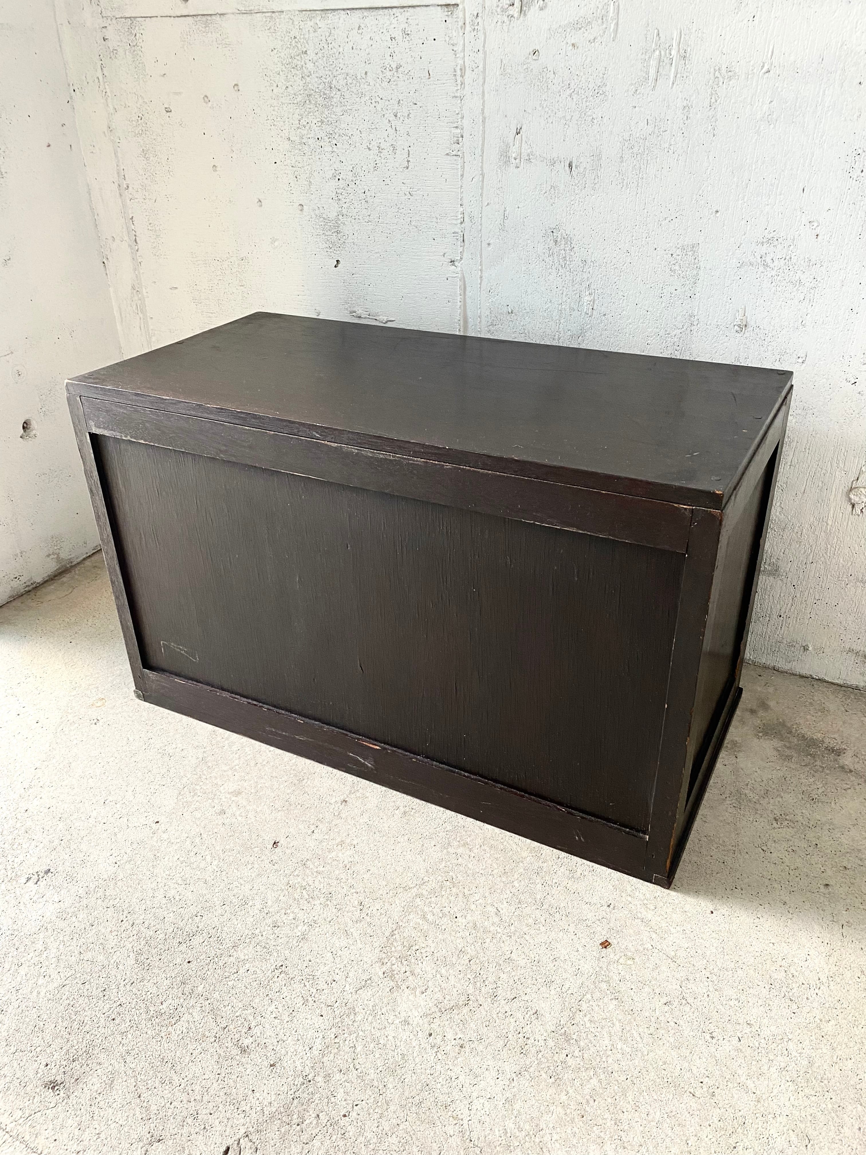 経年変化の落ち着きある木肌とガラス引戸、上品な佇まいが感じ良い収納棚。引戸の開閉は比較的スムーズに行えます。キッチンで食器や調味料のストック棚としてや、趣味部屋で本や小物の収納棚としても素敵です。