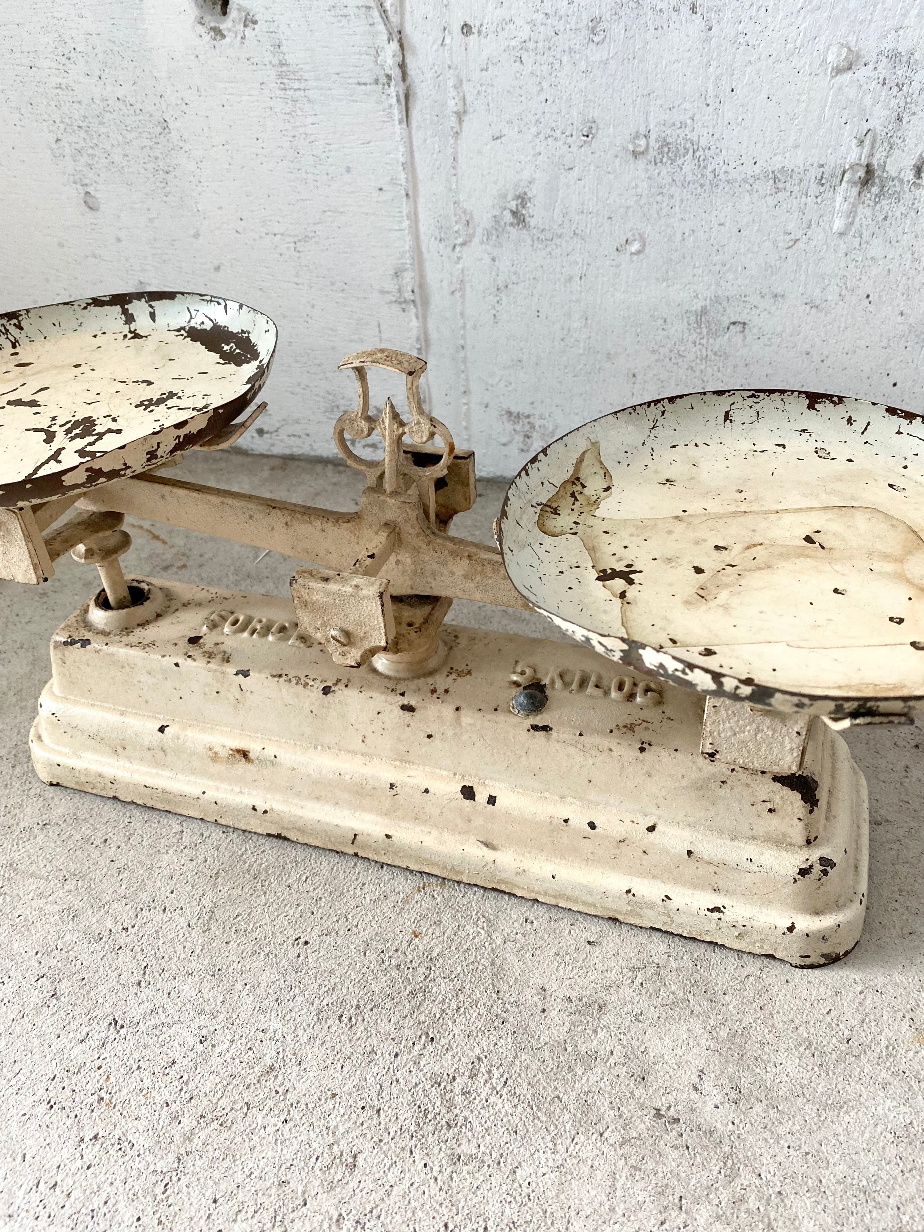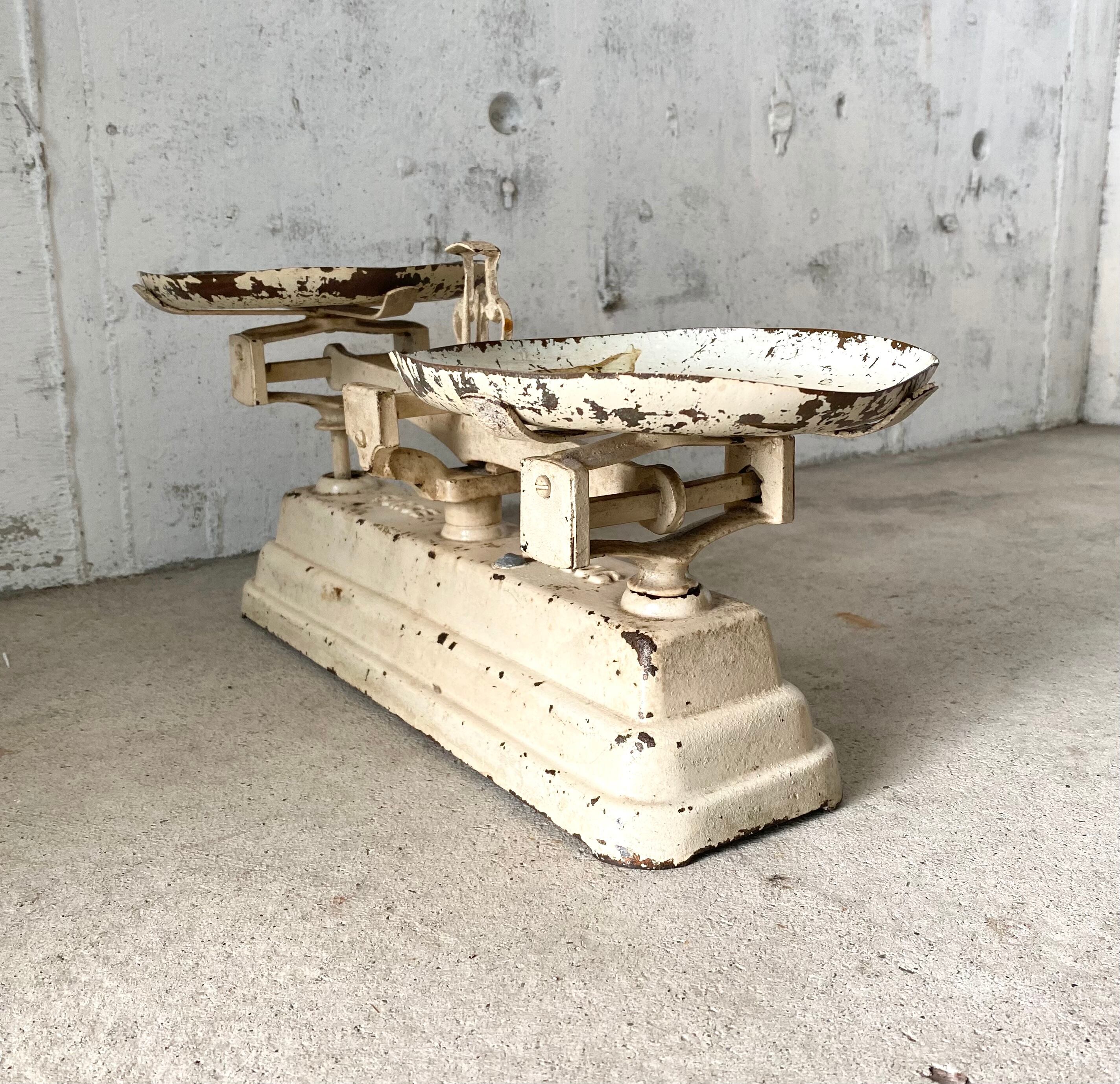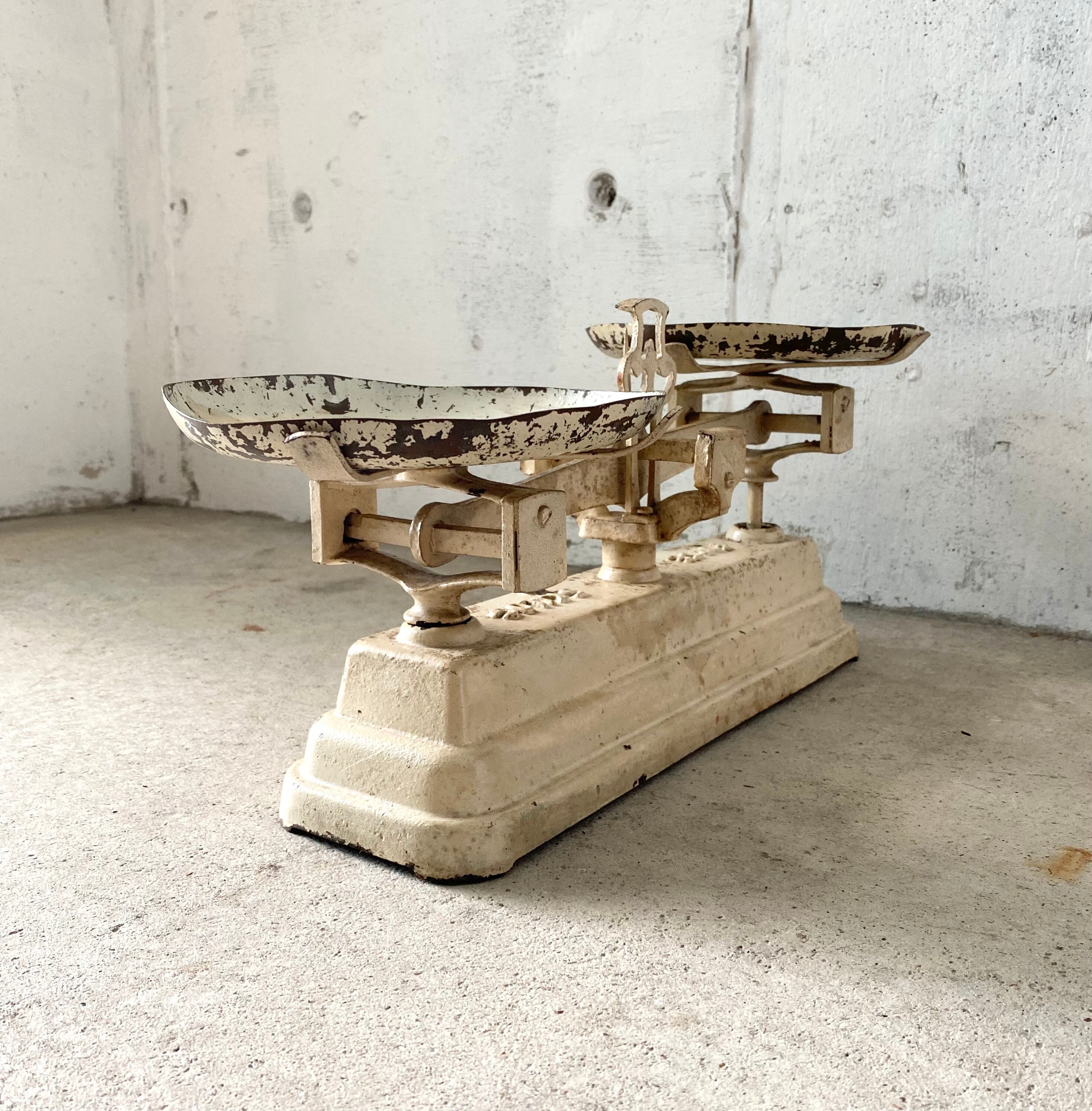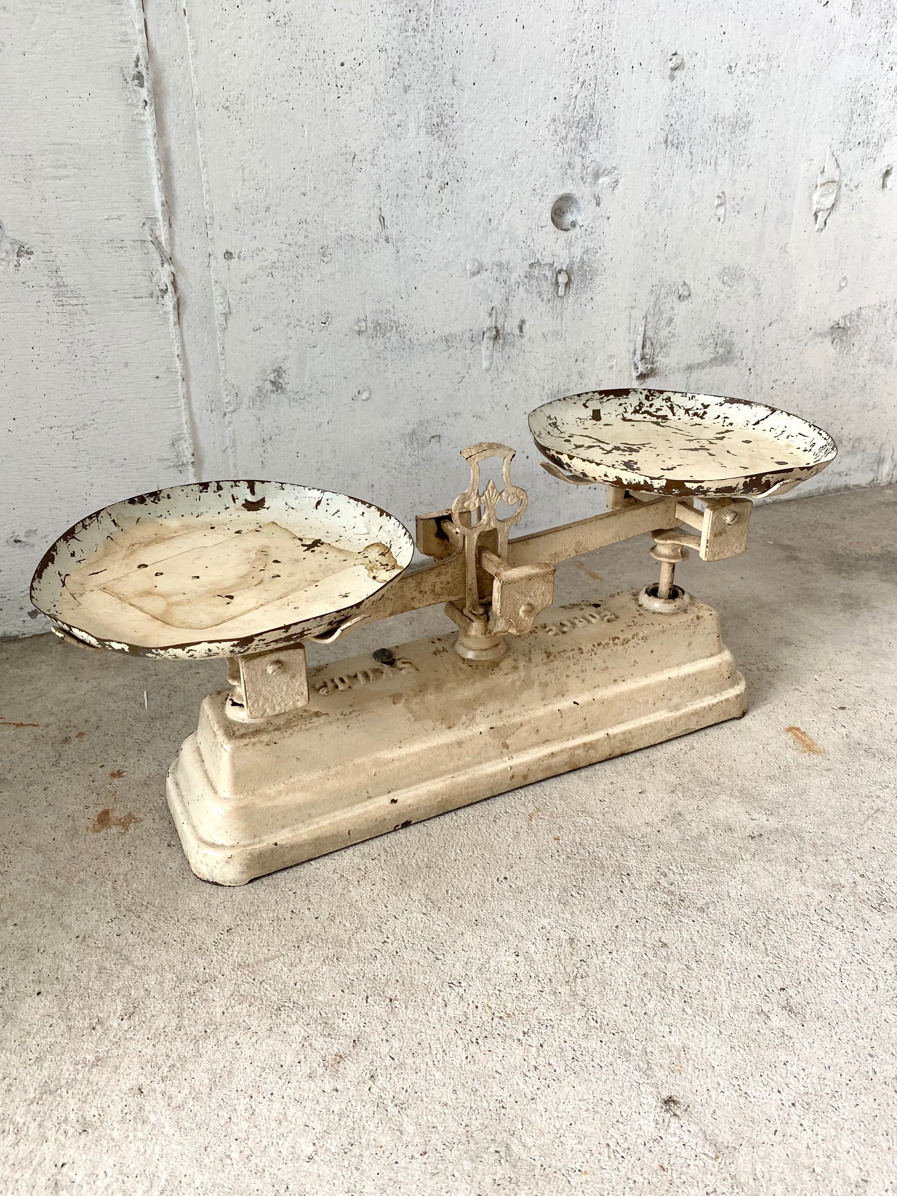 経年変化の程良く禿げたペイント、サビ感が雰囲気良い天秤台。お部屋の卓上やカウンター上で植物、小物を置いてディスプレイしてみたり、お店の店舗什器としてもオススメの品です。