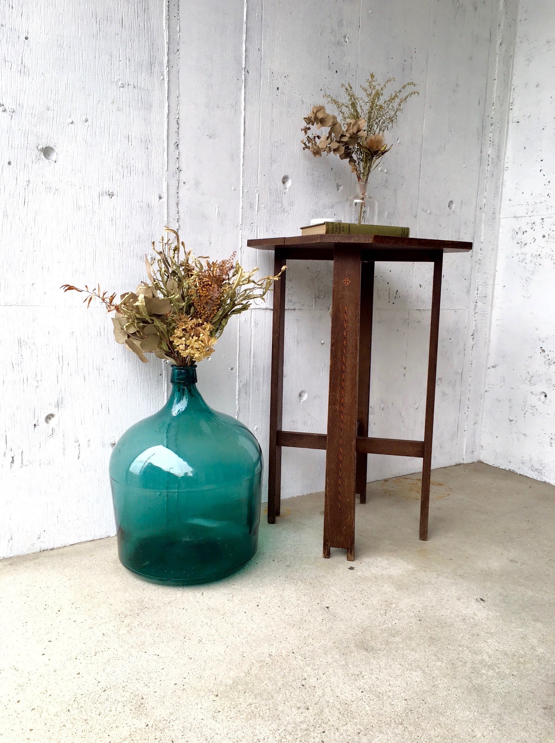 緑がかったガラスの色味が綺麗な、大きめサイズのガラス瓶。全体的に綺麗で状態も良いです。自宅使いでお部屋のディスプレイやショップのディスプレイとして、ドライフラワーをこんもり入れて飾ってみたり、大きめな木枝を入れて、格好良く飾ってみても素敵な空間が演出できそうです。