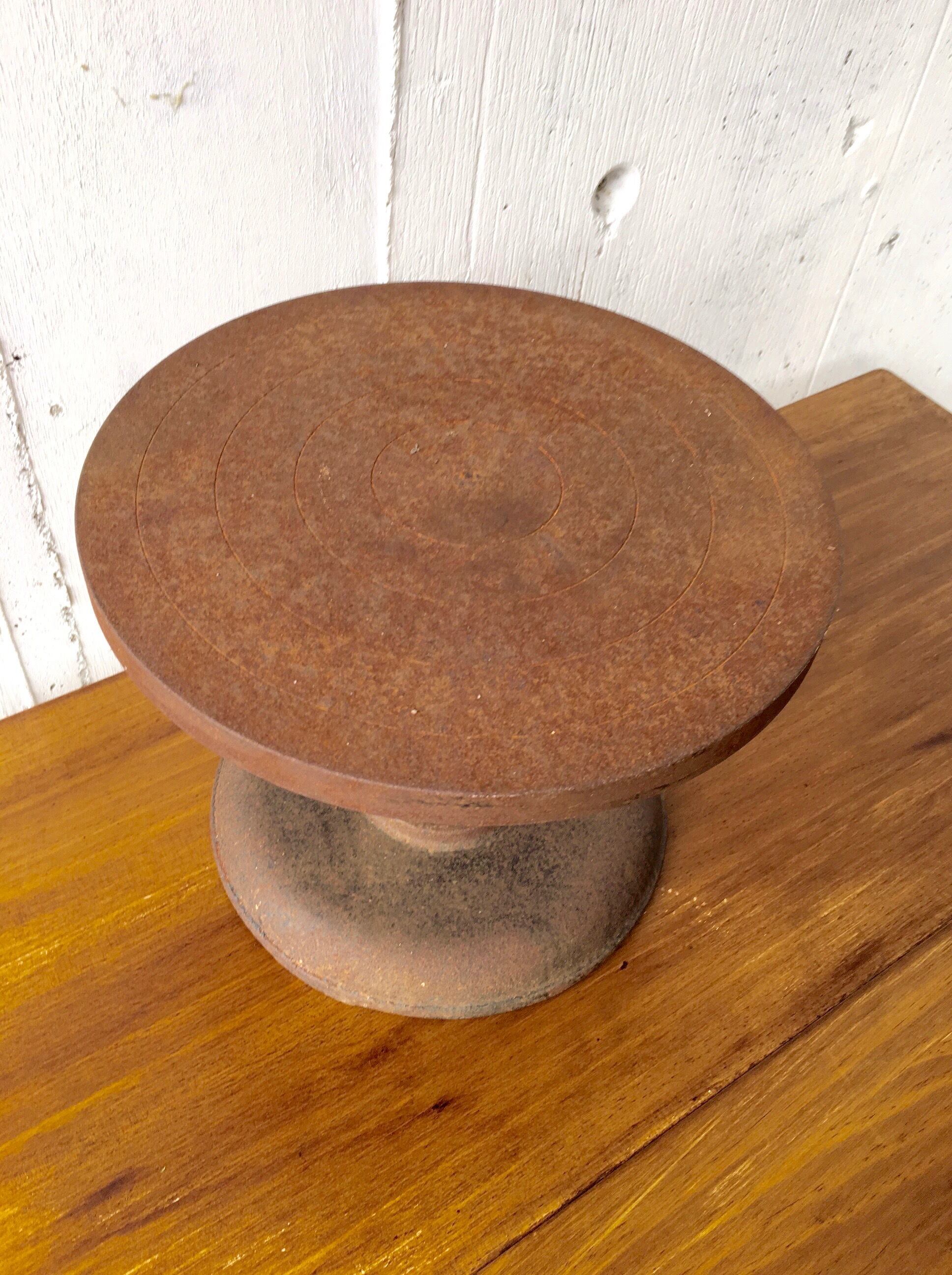 古いアイアン製の飾り台になります。スレや当たりキズ、サビ、剥げや落としきれない汚れなどがあります。飾り台は回転式になっています。特にがたつきもなく、日常気軽にお使いいただけます。全体的に状態も良く、まだまだ実用的にお使いいただけます。