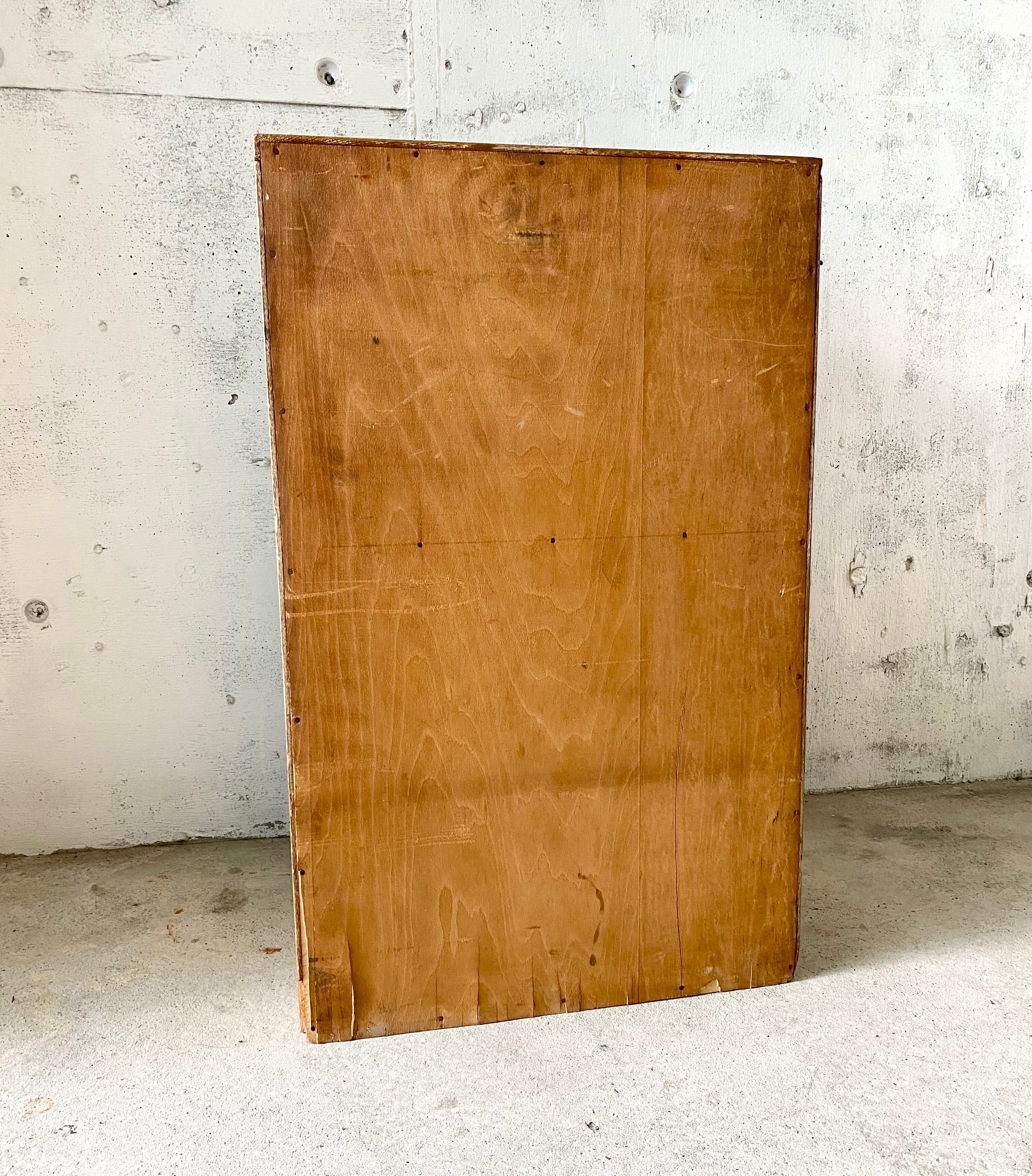 古い収納棚になります。スレや当たりキズ、禿げ、欠け、サビ、隙間、穴、割れ、落としきれない汚れなどがあります。扉、引出しの開閉はスムーズに行えます。全体的に状態も良いのでまだまだ活躍してくれます。