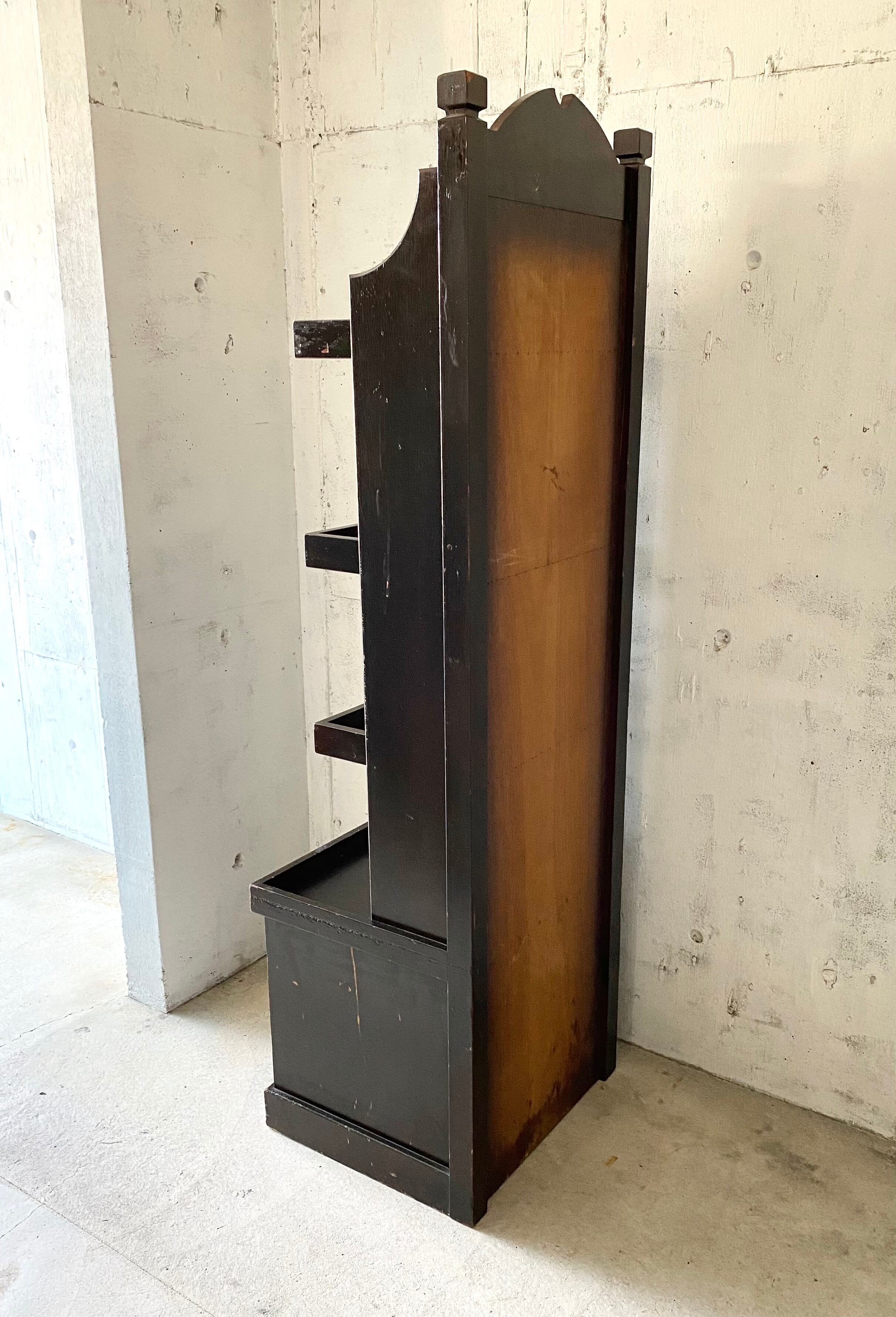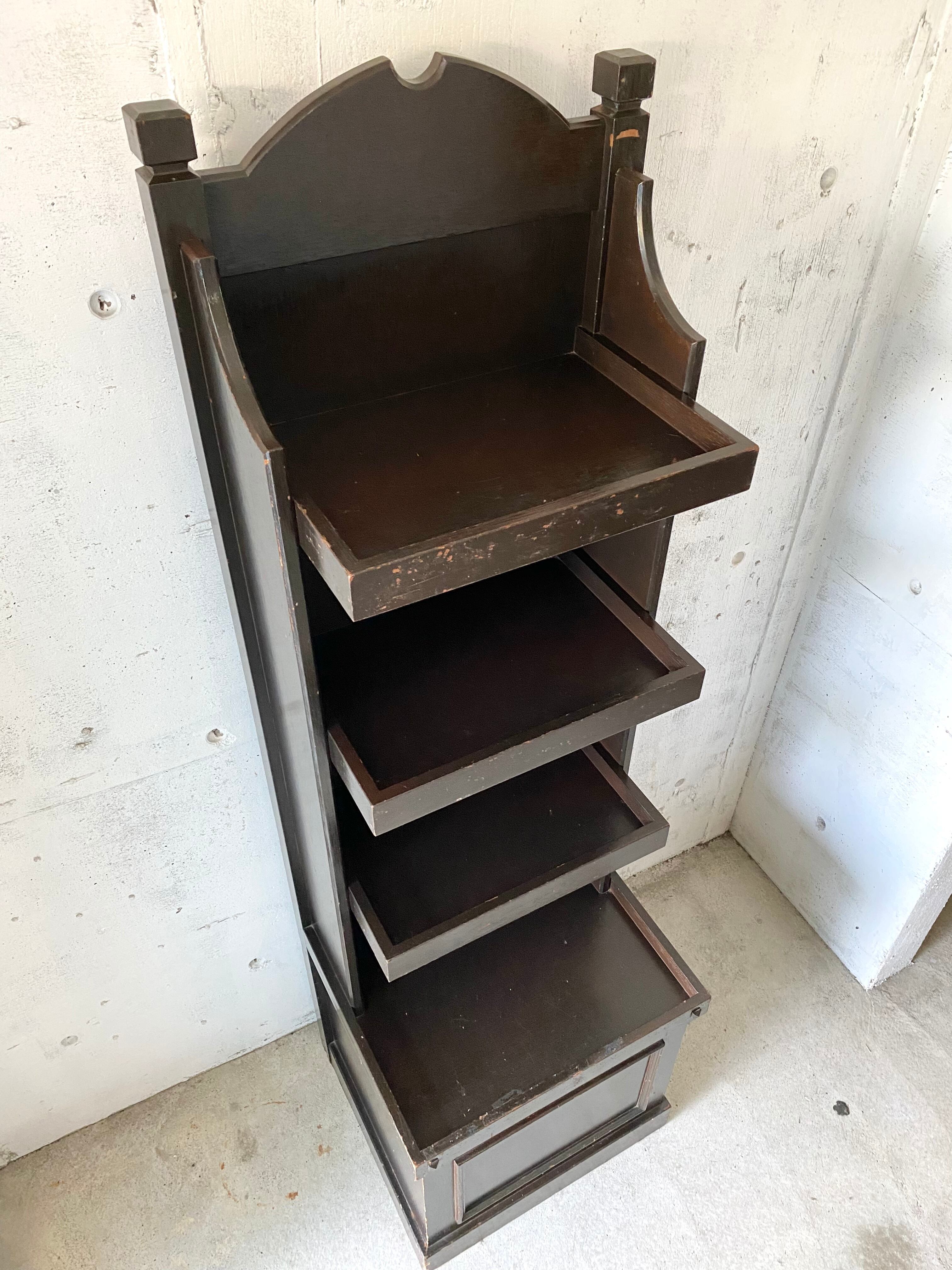 古い飾り棚になります。スレや欠け、当たりキズ、割れ、反り、隙間、落としきれない汚れなどがあります。全体的に状態も良いのでまだまだ実用的に活躍してくれます。