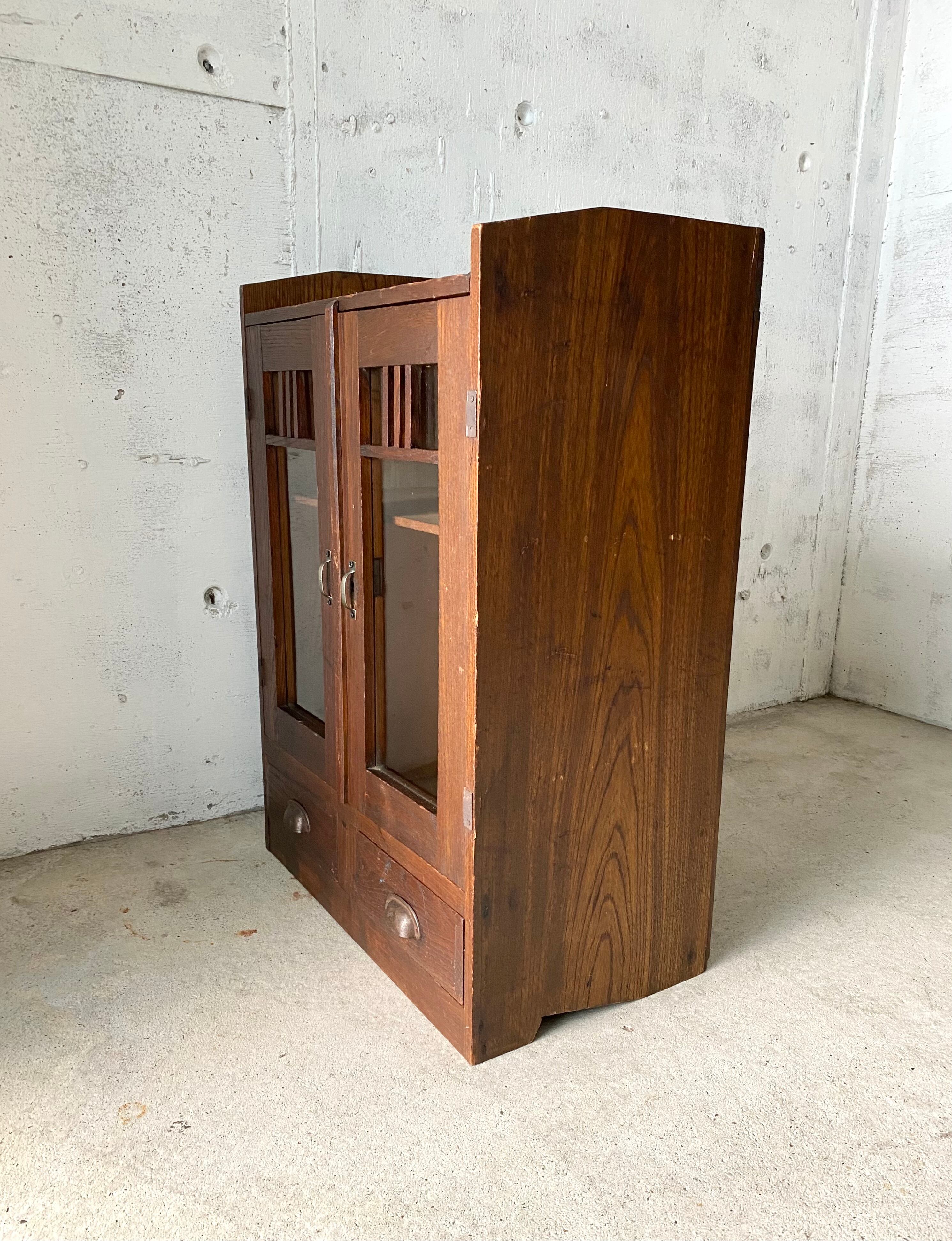 落ち着きある佇まいのガラス扉収納棚[古家具]