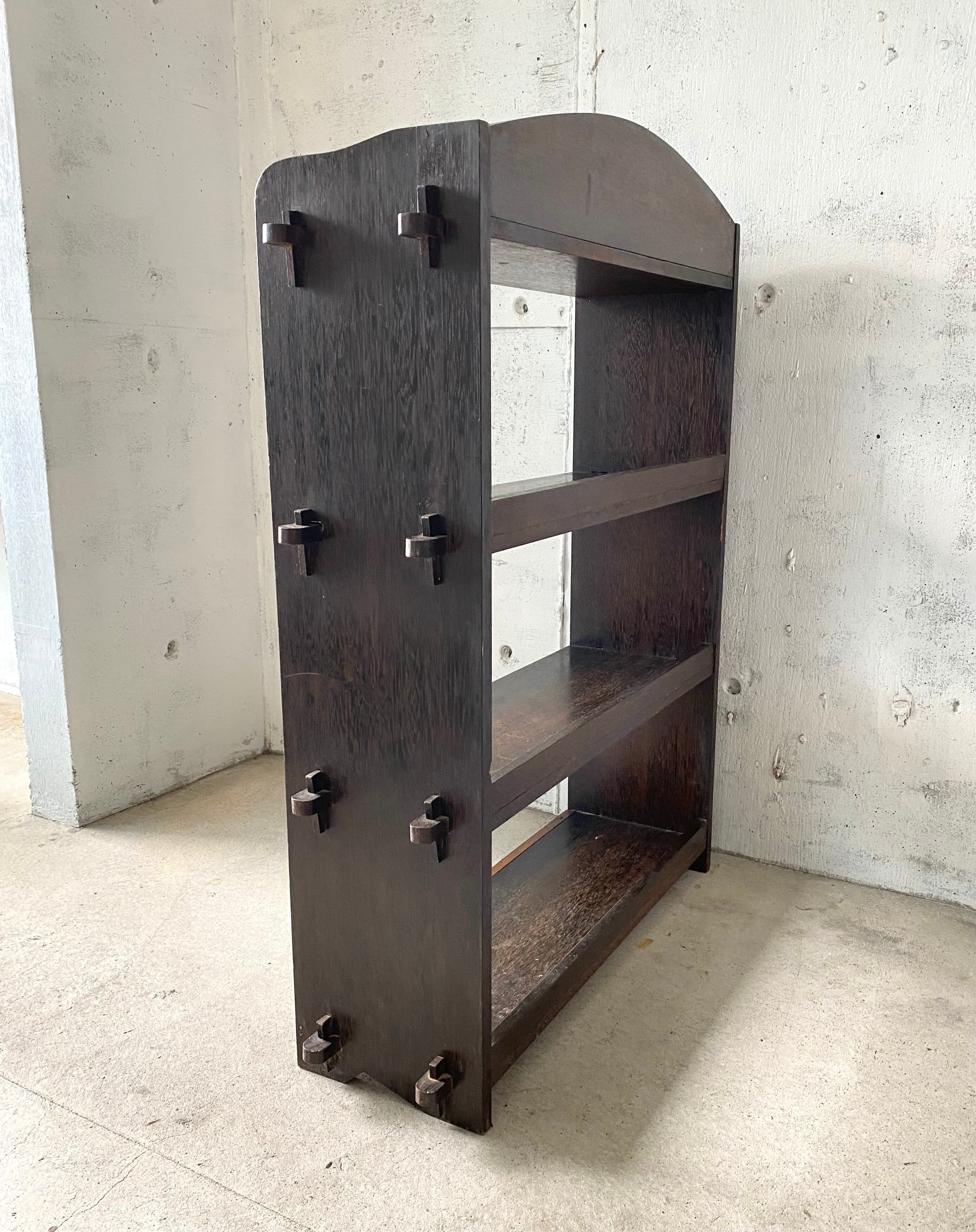 経年変化の深みのある木肌、上品な佇まいが感じ良い楔棚。釘を使わず楔で組み立てられていて、しっかりとしています。キッチンで食器や調味料の収納棚としてや、リビングでお気に入りのコレクションや植物を飾るディスプレイ棚としても素敵です。
