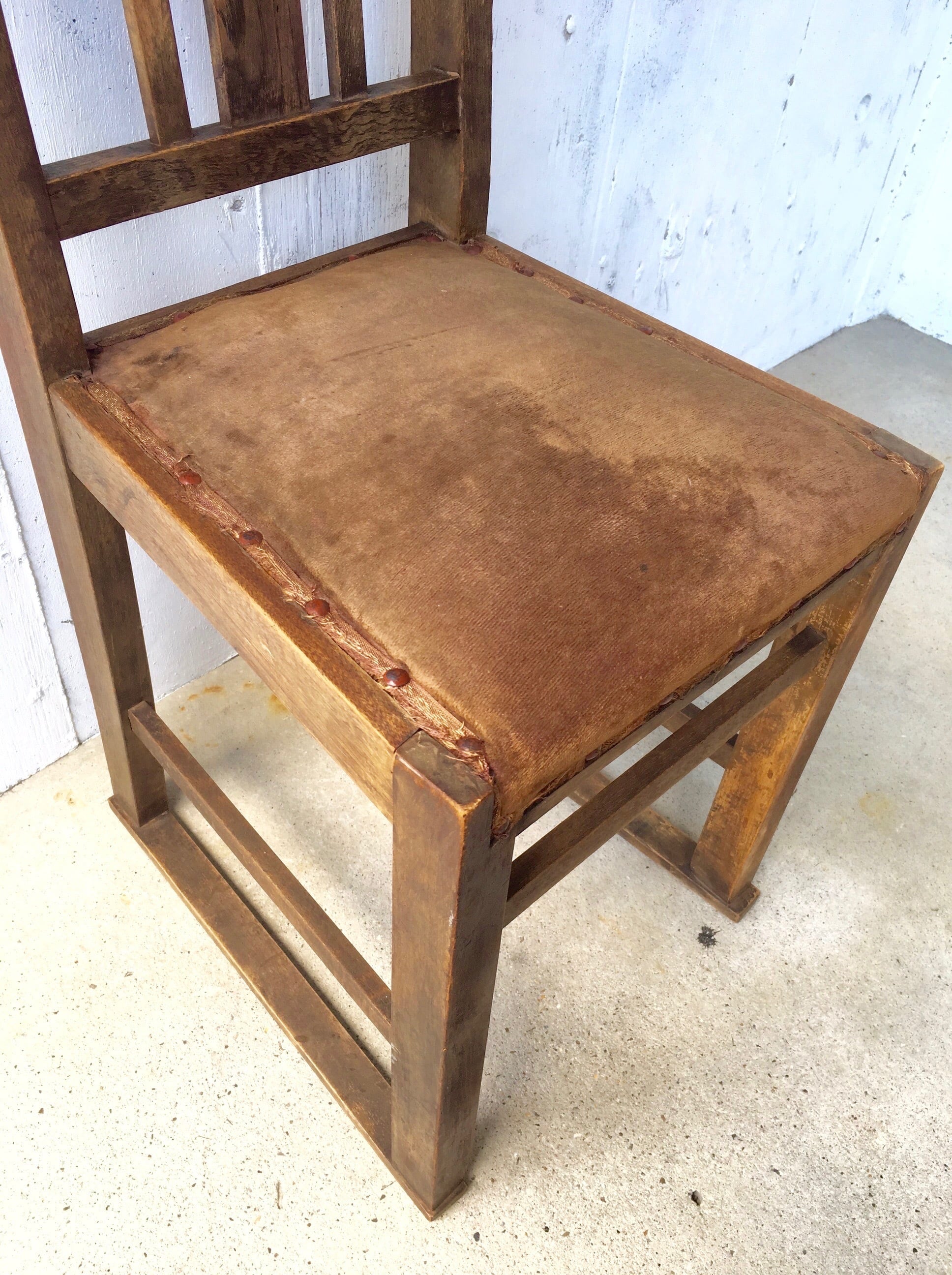 古い椅子になりますので、スレや剥げ、当たりキズ、落としきれない汚れ、座面裏に割れなどがあります。少しのがたつきはありますが、座面部分も比較的状態は良く、使用上問題なくお使い頂けます。全体的に状態も良いのでまだまだ実用的に活躍してくれます。