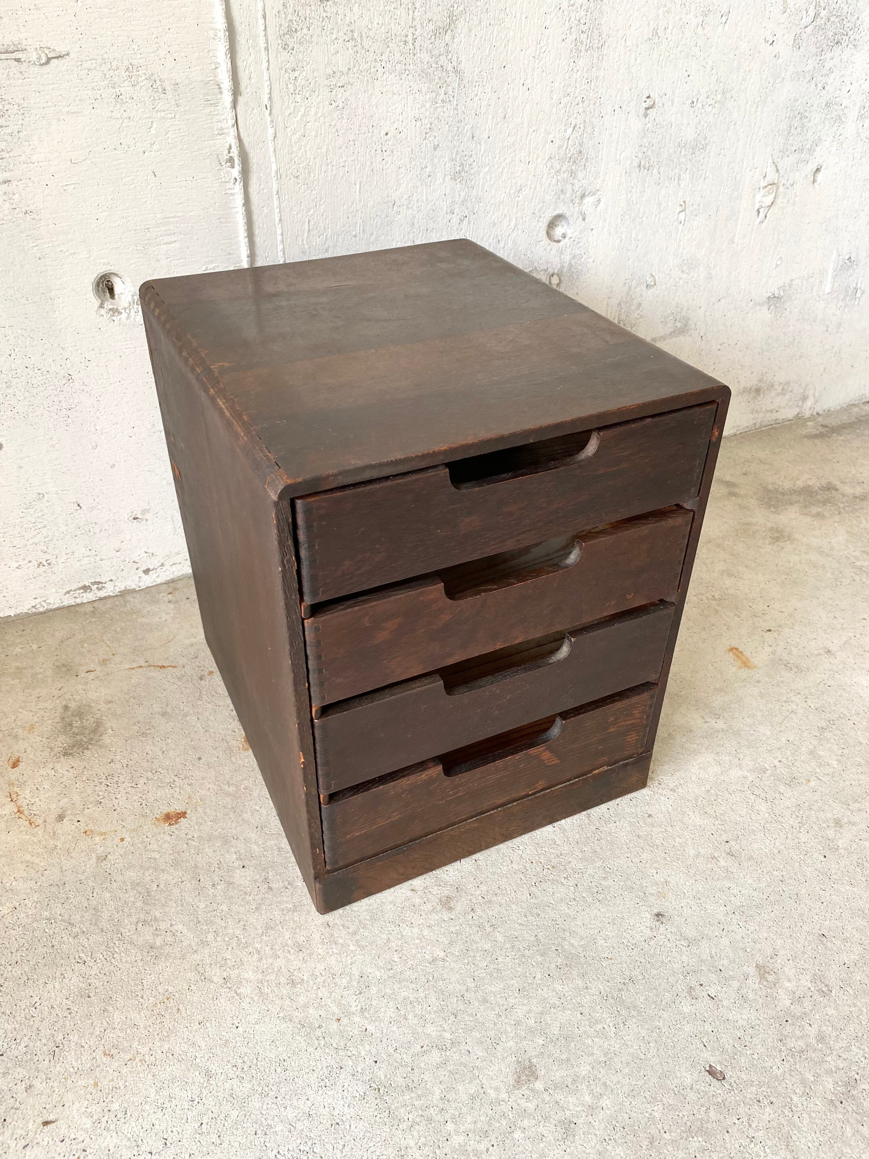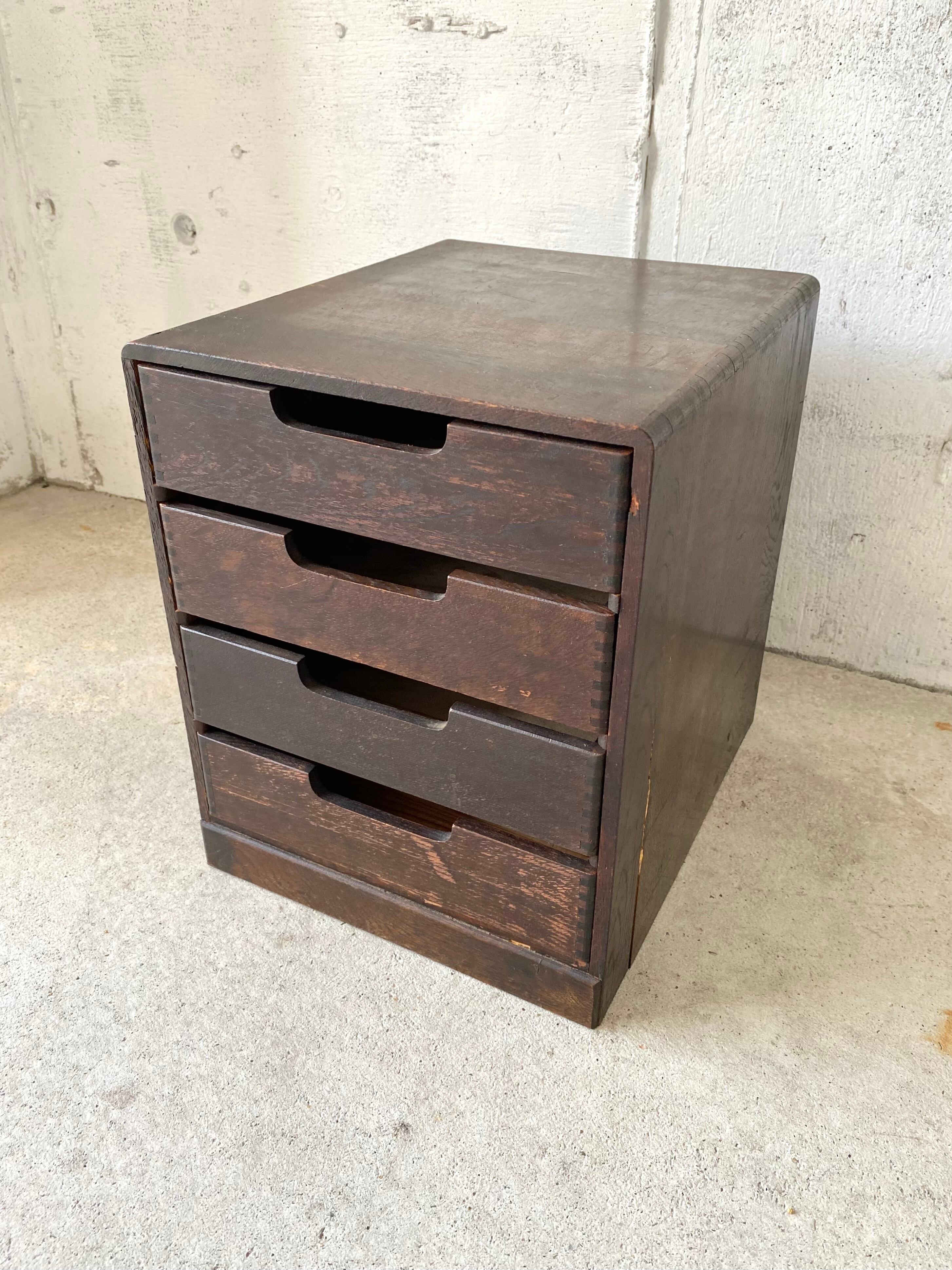 古い小引出しになります。スレや欠け、当たりキズ、割れ、禿げ、隙間、落としきれない汚れなどがあります。引出しの開閉は比較的スムーズに行えます。全体的に状態も良いのでまだまだ実用的に活躍してくれます。