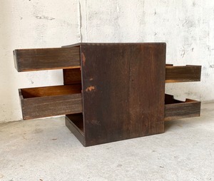 経年変化の味のある木肌、上品な佇まいが感じ良い小引出し。両側に開閉出来るので使い勝手も良いです。お部屋のカウンター上や卓上、棚上に置いて、細々した物や紙物、ステーショナリーの就農としても素敵です。