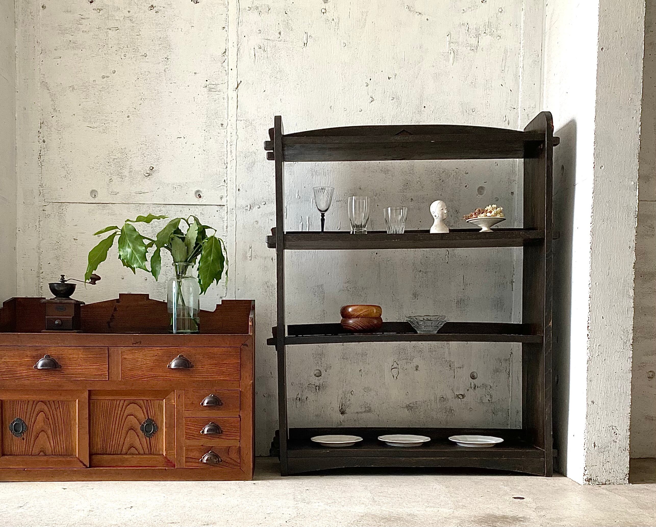 経年変化の深みのある木肌、すっきりとした姿が感じ良い楔棚。釘を使わない造りでしっかりとしています。キッチンで食器や調味料の収納としてや、リビングで小物や本、植物を飾りながら収納しても素敵です。