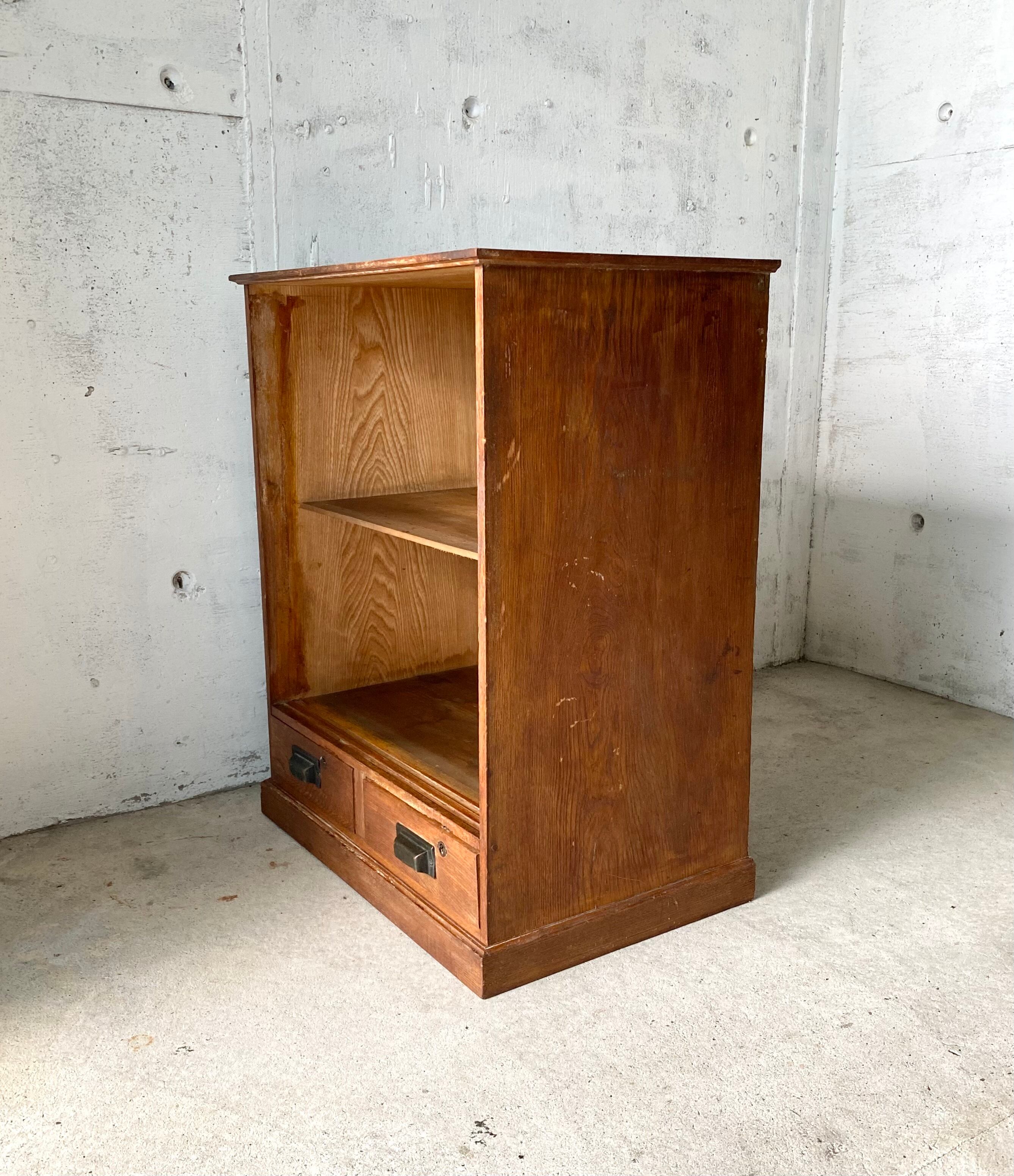 経年変化の雰囲気ある木肌とアクセントのある取手、上品な佇まいが感じ良い収納棚。キッチンで食器や調味料のストック棚としてや、リビングで本や小物の収納としても素敵です。