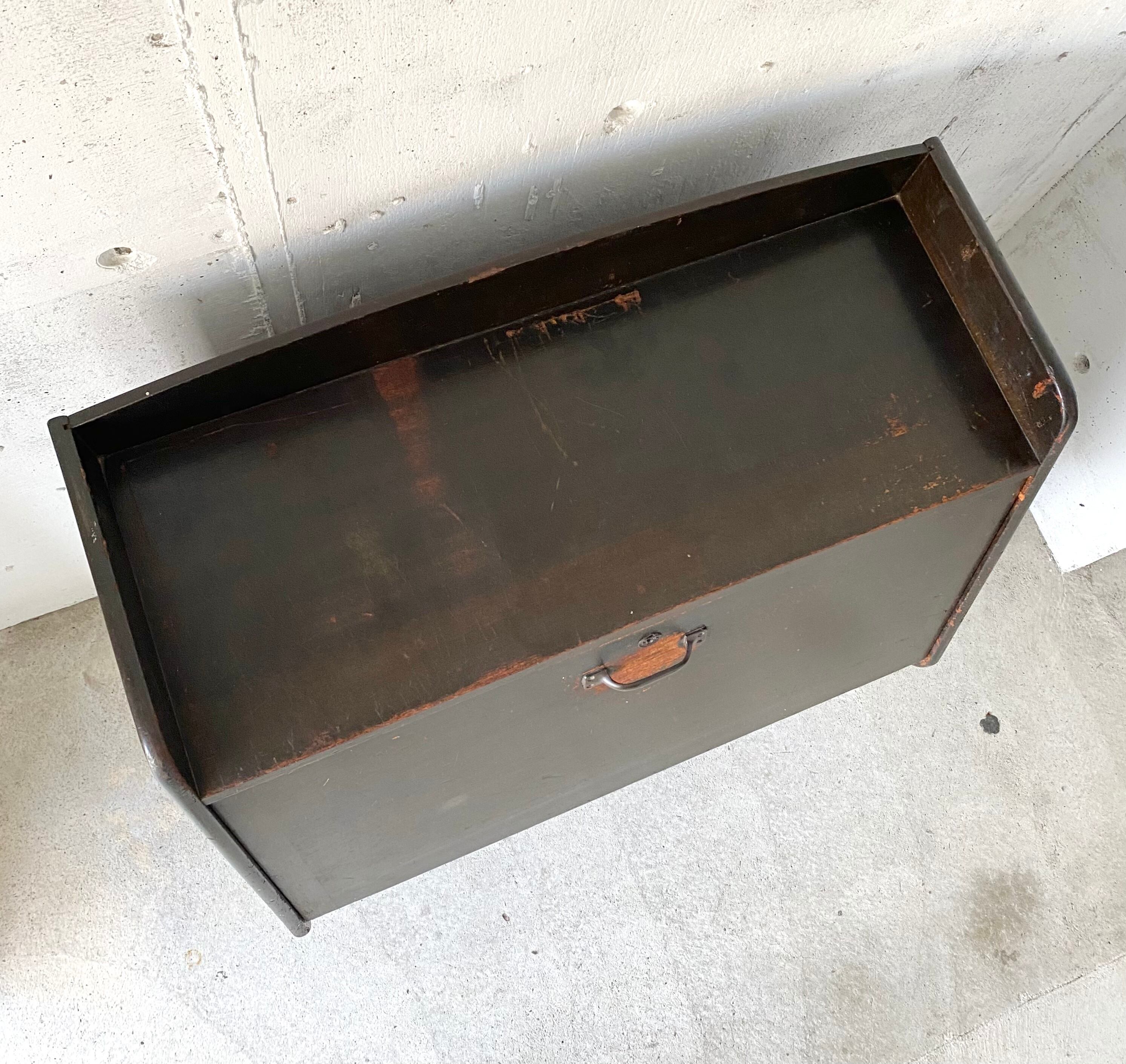 経年変化の雰囲気ある木肌と個性のある姿、上品な佇まいが感じ良い収納棚。リビングや趣味部屋などで、小物、紙物、本の収納としてや、キッチンで食器や調味料のストック棚としても素敵にお使い頂けそうです。