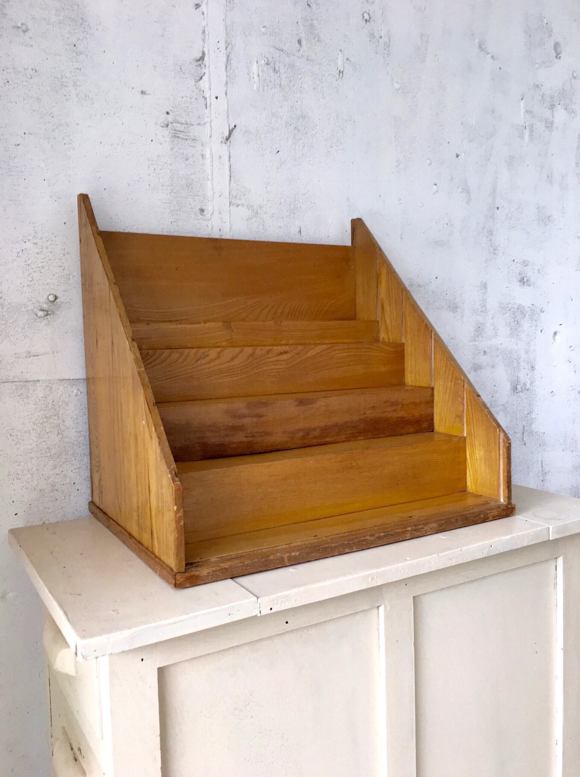 経年変化のナチュラルな木味が心地よい飾り台です。特に目立つがたつきなどもなく、状態は良いです。リビングや趣味部屋で、アクセサリーやメガネ、植物などを飾りながら置く台として、感じ良くお使いいただけそうです。