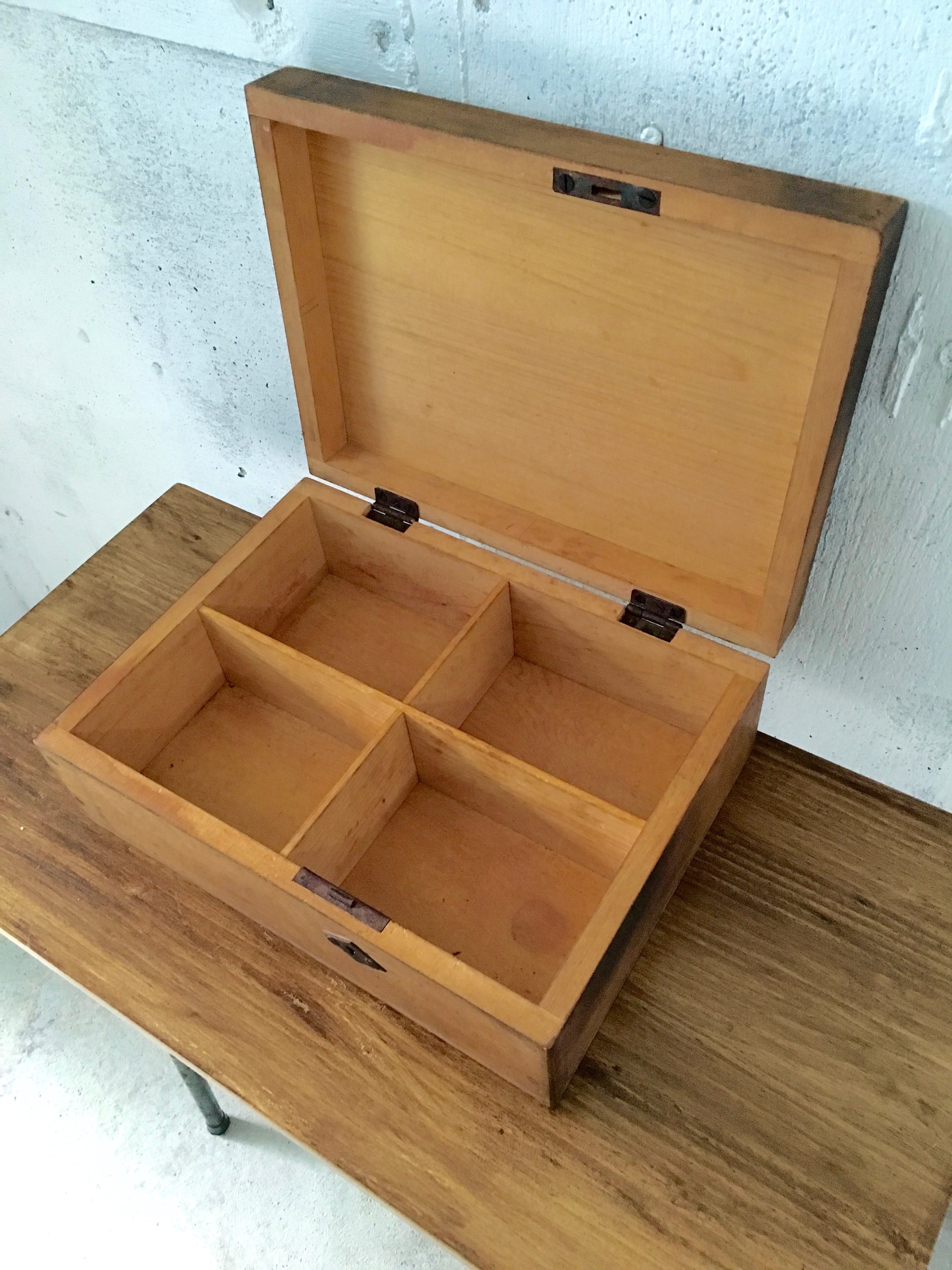 古い木箱になります。スレや当たりキズ、欠け、落としきれない汚れなどがあります。収納中は比較的に綺麗で、扉の開閉もスムーズに行えます。収納箱の鍵は付属しておりません。全体的に状態も良いのでまだまだ実用的にお使いいただけます。