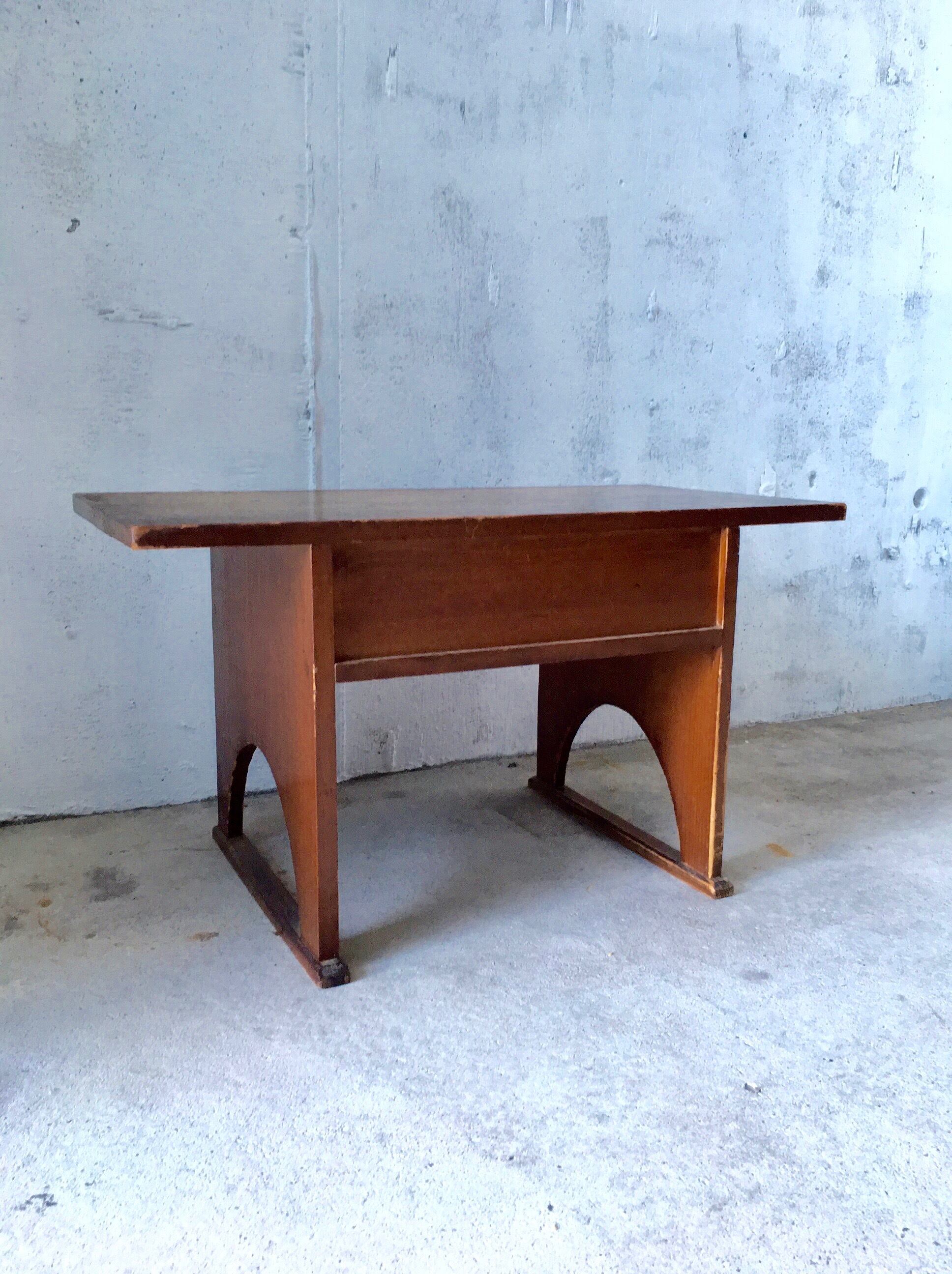 経年変化の良い木肌、雰囲気のある取手が感じ良いローテーブル。小ぶりなサイズ感が可愛いらしいです。お気に入りの小物や植物などを置いて、お部屋で飾ってみたり、実用使いで作業テーブルとしてや、お子さんの勉強机としても素敵です。