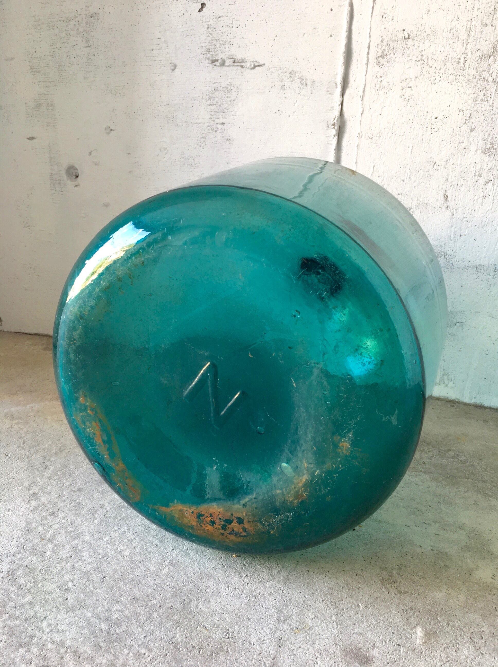 緑がかったガラスの色味が綺麗な、大きめサイズのガラス瓶。全体的に綺麗で状態も良いです。自宅使いでお部屋のディスプレイやショップのディスプレイとして、ドライフラワーをこんもり入れて飾ってみたり、大きめな木枝を入れて、格好良く飾ってみても素敵な空間が演出できそうです。