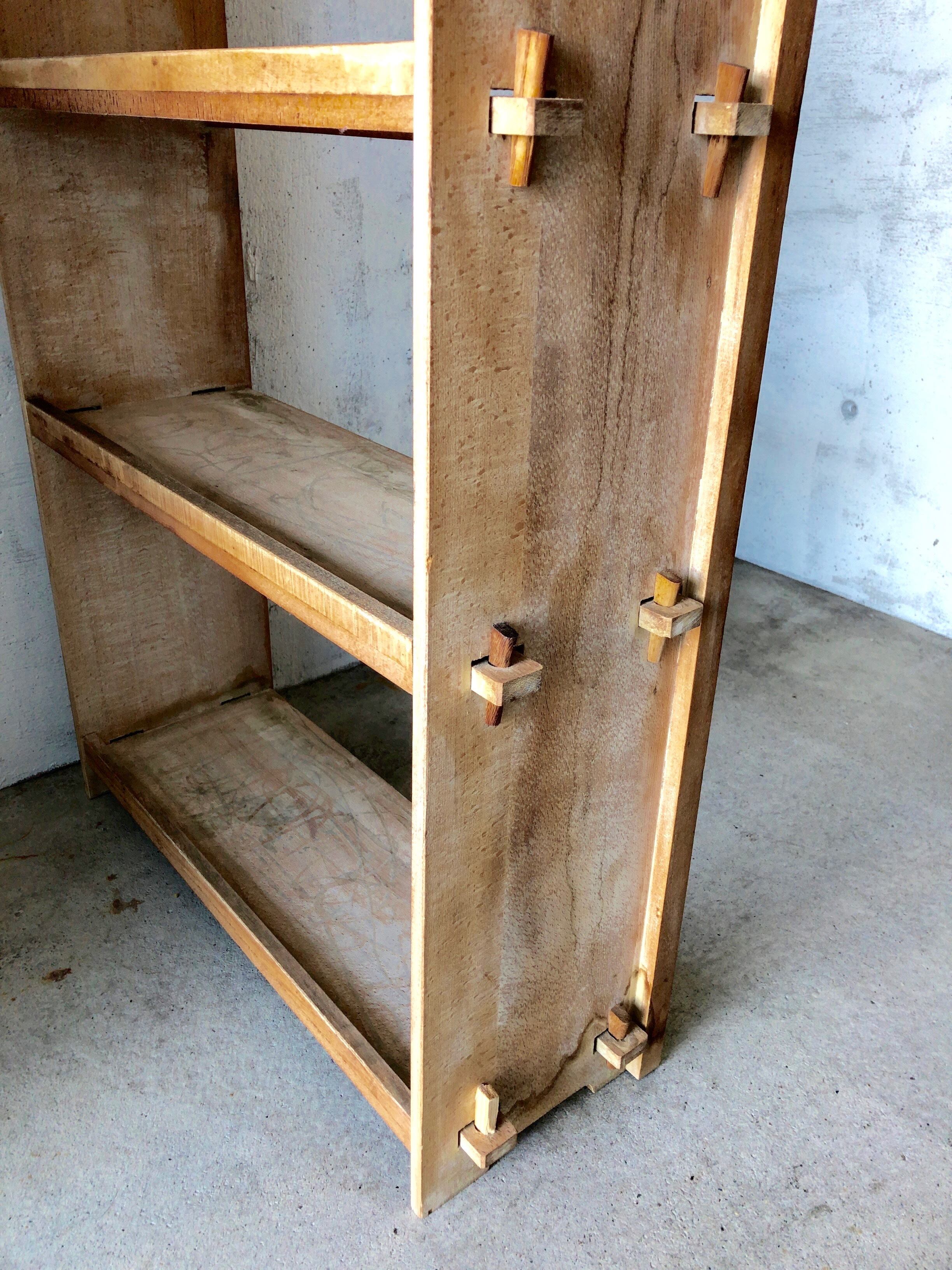 スッキリとしたデザインで落ち着いた木味の棚。釘を使わず造られた、しっかりとした造りのくさび棚です。奥行も深すぎず、使いやすいです。本や小物、植物のディスプレイ棚としてや、キッチンで食材やお皿のストック棚、ショップさんのディスプレイ棚としてもオススメです。