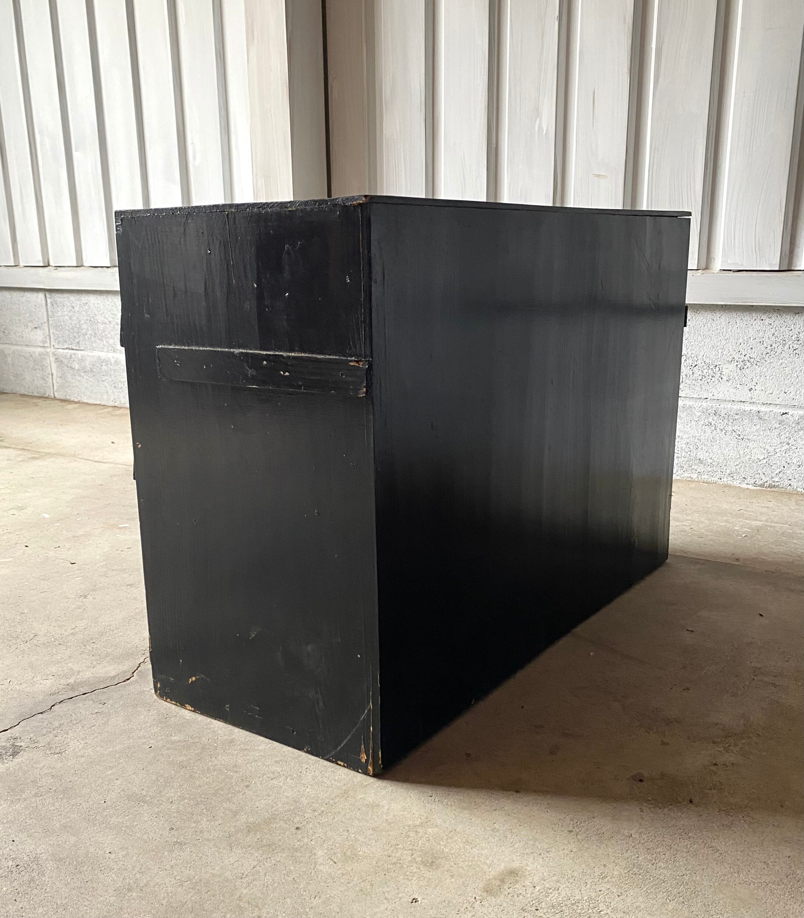 格好の良い黒い木肌と味のある取手、パタパタ扉が可愛い収納棚。キッチンで食器や調味料のストック棚としてや、リビングや趣味部屋で小物の収納として、玄関で靴棚としても素敵です。